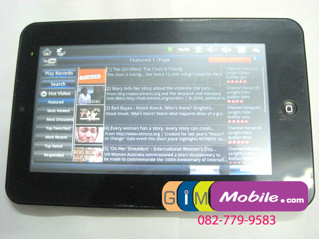 - ระบบปฏิบัติการ Android 2.2- หน้าจอระบบสัมผัสแบบ Crystal Bright ขนาด 7 นิ้ว 16 ล้านสี, 800x480 pixels